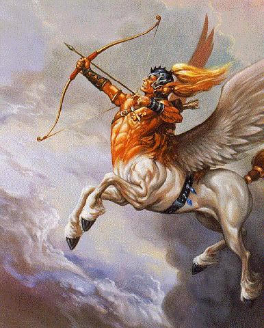 Centauro Pegasus, meio homem meio cavalo Pegasus, alguns dizem que eles não existem, outros dizem que é apenas um deus mitológico, e outros dizem que habita nas montanhas.. são extremamente raros..